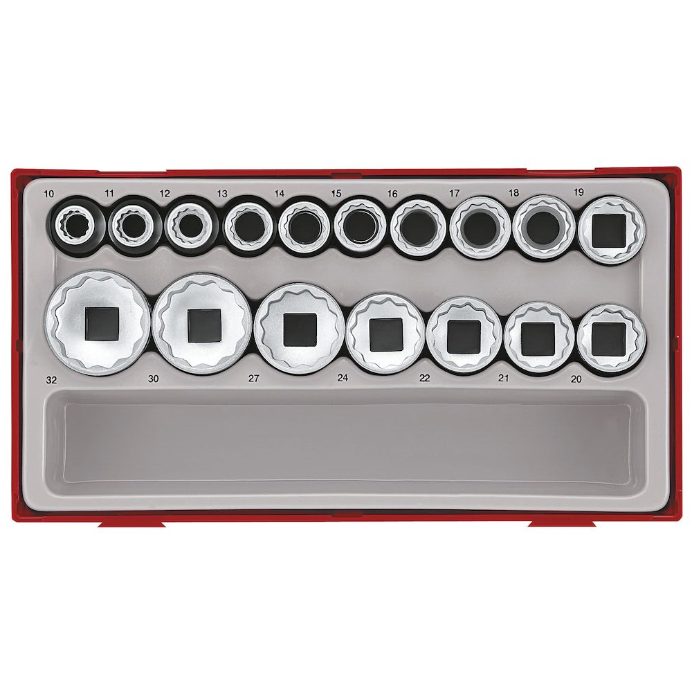 Jogo de 18 chaves de caixa 1/2'' de 12 ou 6 pontos Teng Tools