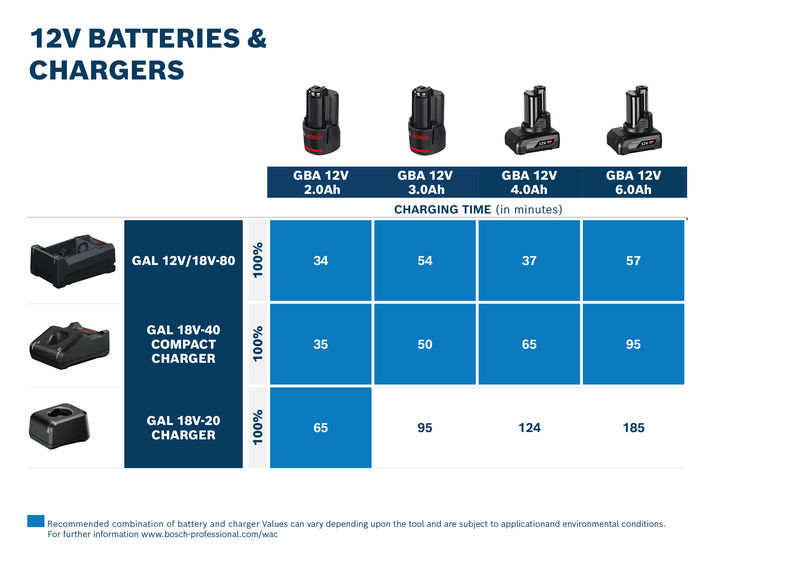 • Simples e conveniente, um carregador para todas as tuas baterias Bosch Professional de 12 V e 18 V