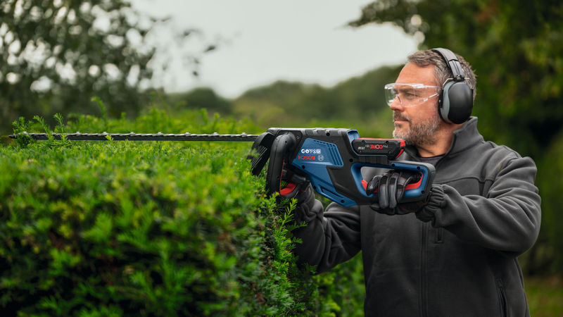 • Desempenho de corte melhorado com lâmina de 60 cm, sistema Anti-Blocking da Bosch e volante de inércia para um corte mais suave e fácil de sebes mais espessas e densas