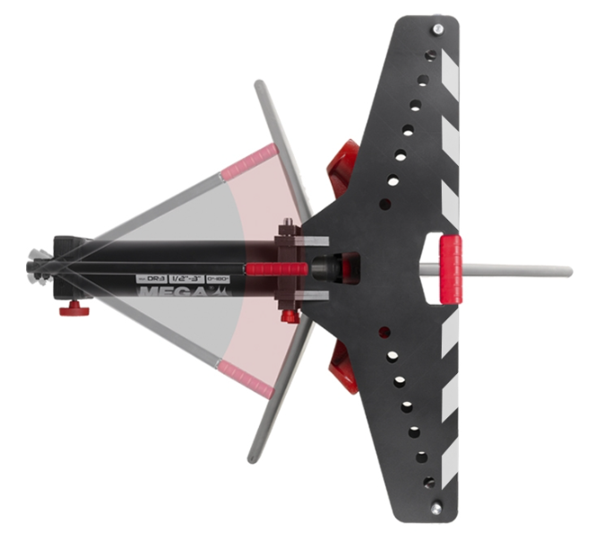 Equipado com armações de dobra retráteis, marcadas de forma indelével, para facilitar o posicionamento dos suportes de dobra e do tubo.