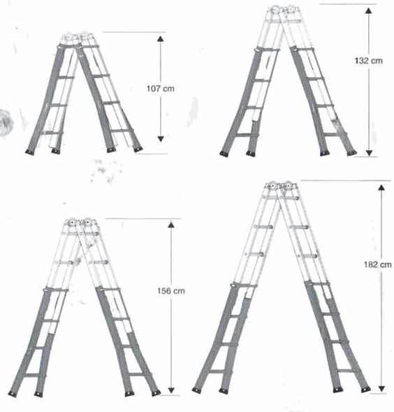 Design Compacto: Estrutura dobrável que permite guardar o escadote em espaços reduzidos, ideal para apartamentos ou armazéns com pouco espaço.