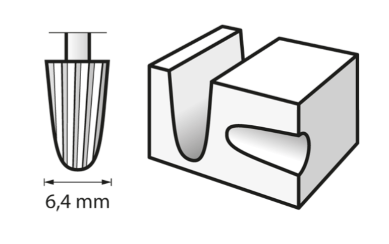 O que permite fazer? As fresas de alta velocidade são adequadas para a remoção de material em aplicações como modelar, esculpir, gravar, escavar cavidades, ranhurar, abrir entalhes, incrustar, fazer orifícios cuneiformes ou fresar à mão livre. Dica: consulte o ícone de imagem ou o vídeo para ver o resultado no material.