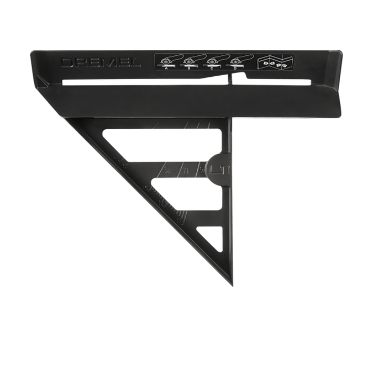 Esta multifixação ajuda a melhorar as capacidades de corte da Dremel DSM20. Cortes em meia-esquadria, à face e cortes a direito podem ser facilmente feitos em rodapés, remates ou cornijas com a guia de corte DSM840.