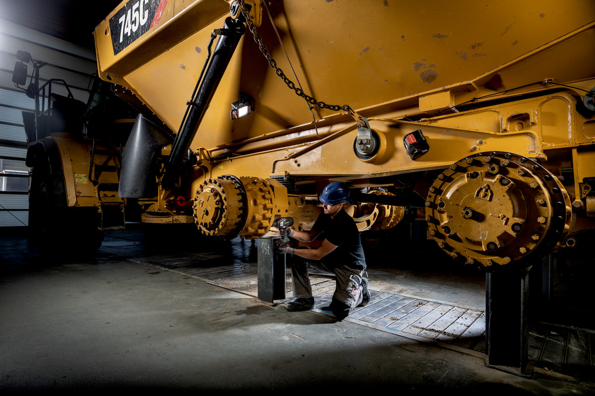 Holofote sem fio compacto com 4000 lúmenes para uma luz de trabalho uniforme, com sombras reduzidas, em superfícies grandes