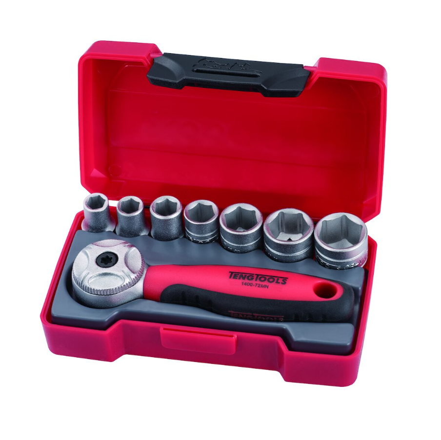 Jogo 1/4'' com 7 chaves de caixa sextavadas e roquete reversível TengTools