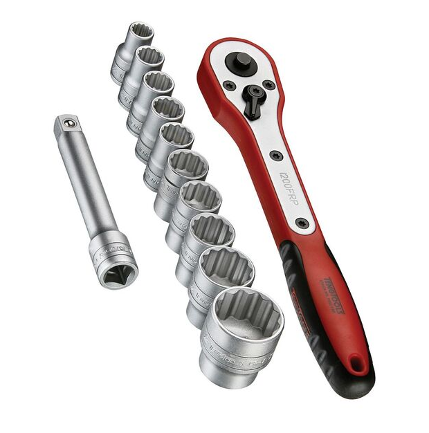 Jogo 3/8'' com 10 chaves de caixa sextavadas e roquete FRP