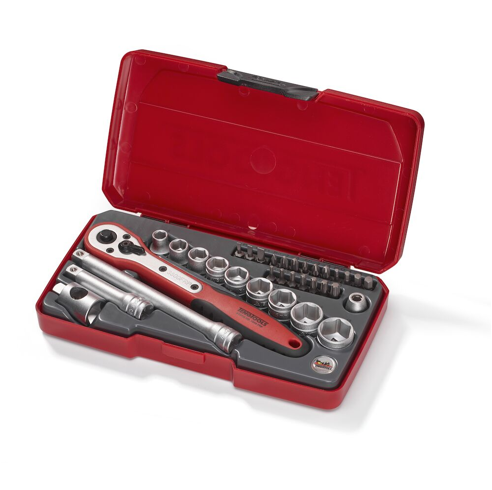 Jogo 34 peças com chaves de caixa 3/8'', roquete e acessórios TengTools
