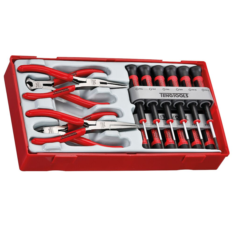 Jogo de 16 peças com Chaves de fendas e Alicates de eletrónica