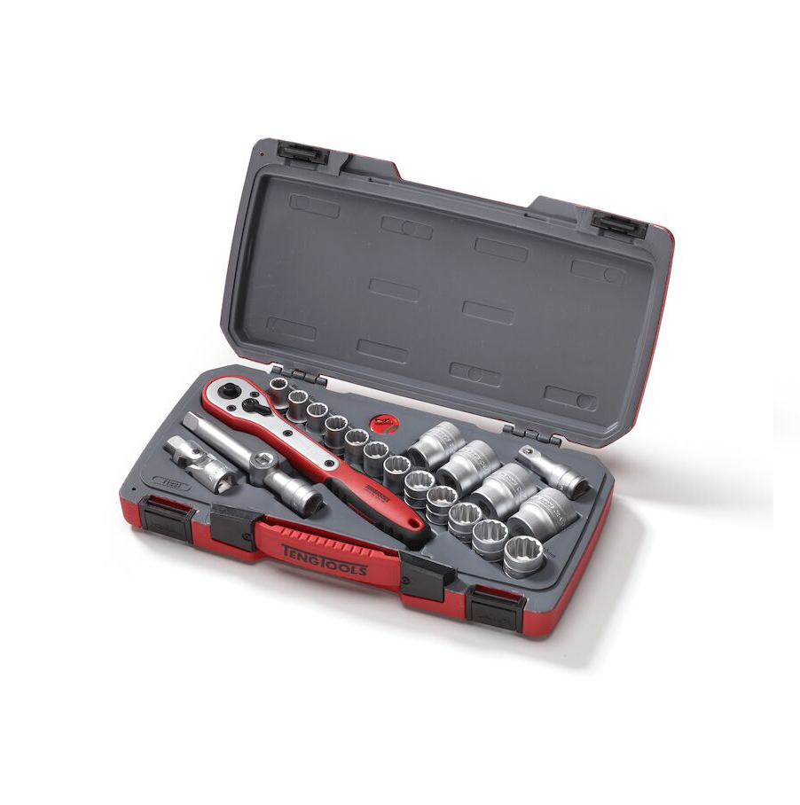 Jogo de 21 peças com chaves de caixa 1/2'' dozeavadas com roquete FRP e acessórios