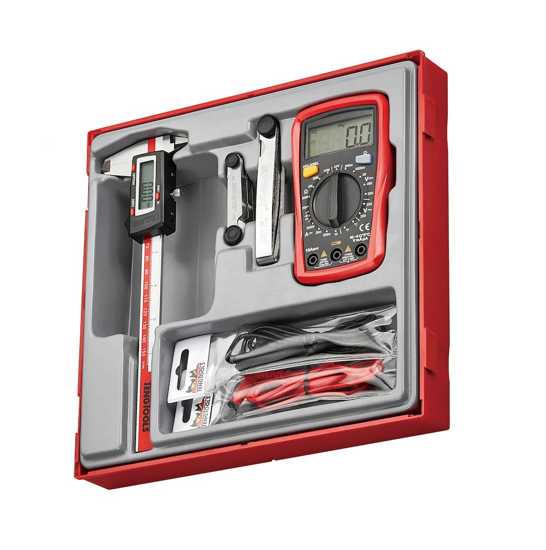 • Inclui um paquímetro digital de 4 funções, multímetro, calibrador de rosca e jogos de lâminas calibradoras