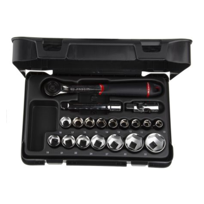 Conjunto de 19 Chaves de Caixa Métricos de 1/2'' com Roquete, 6 Pontos
