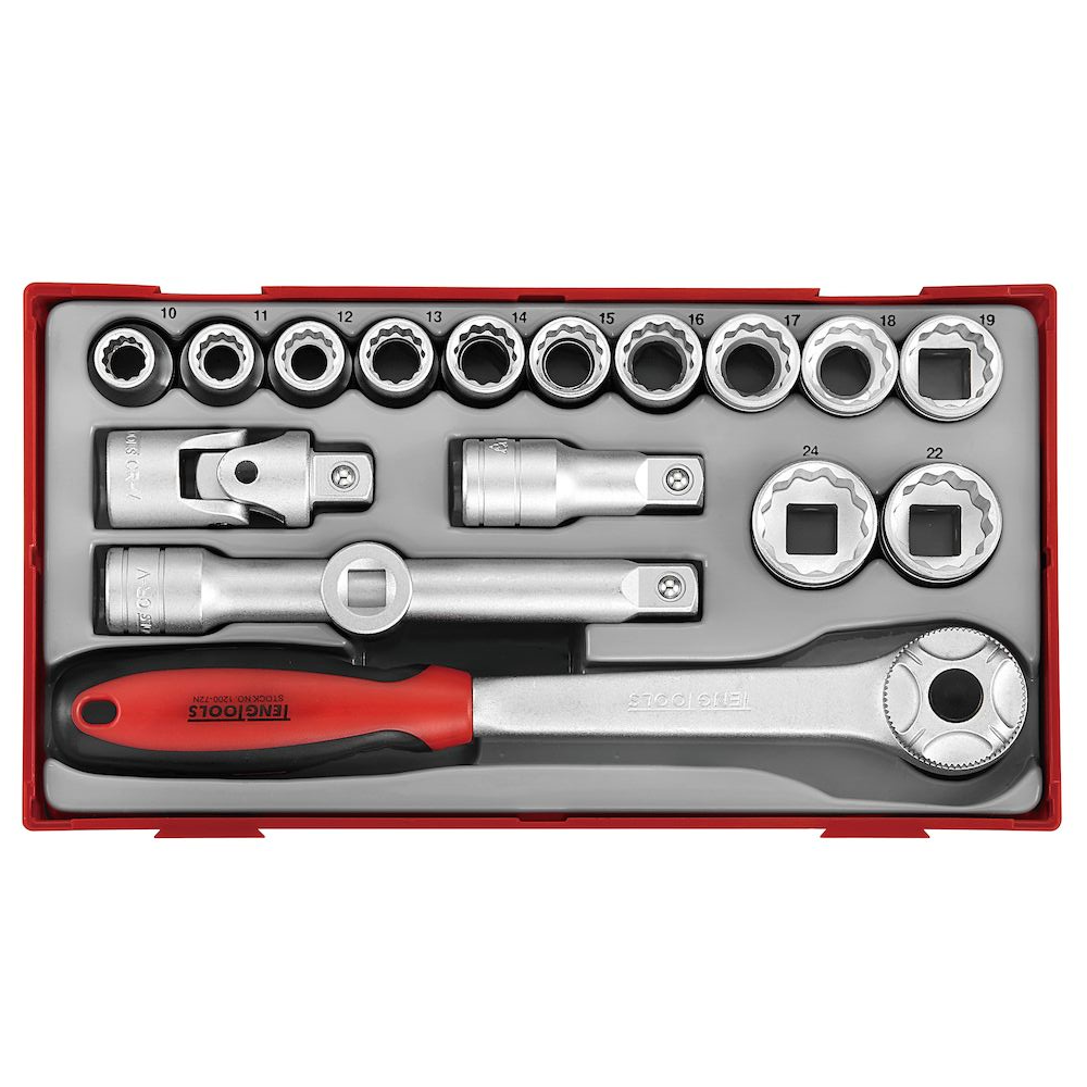 Jogo de Roquete e 17 chaves de caixa 1/2'' de 12 ou 6 pontos Teng Tools