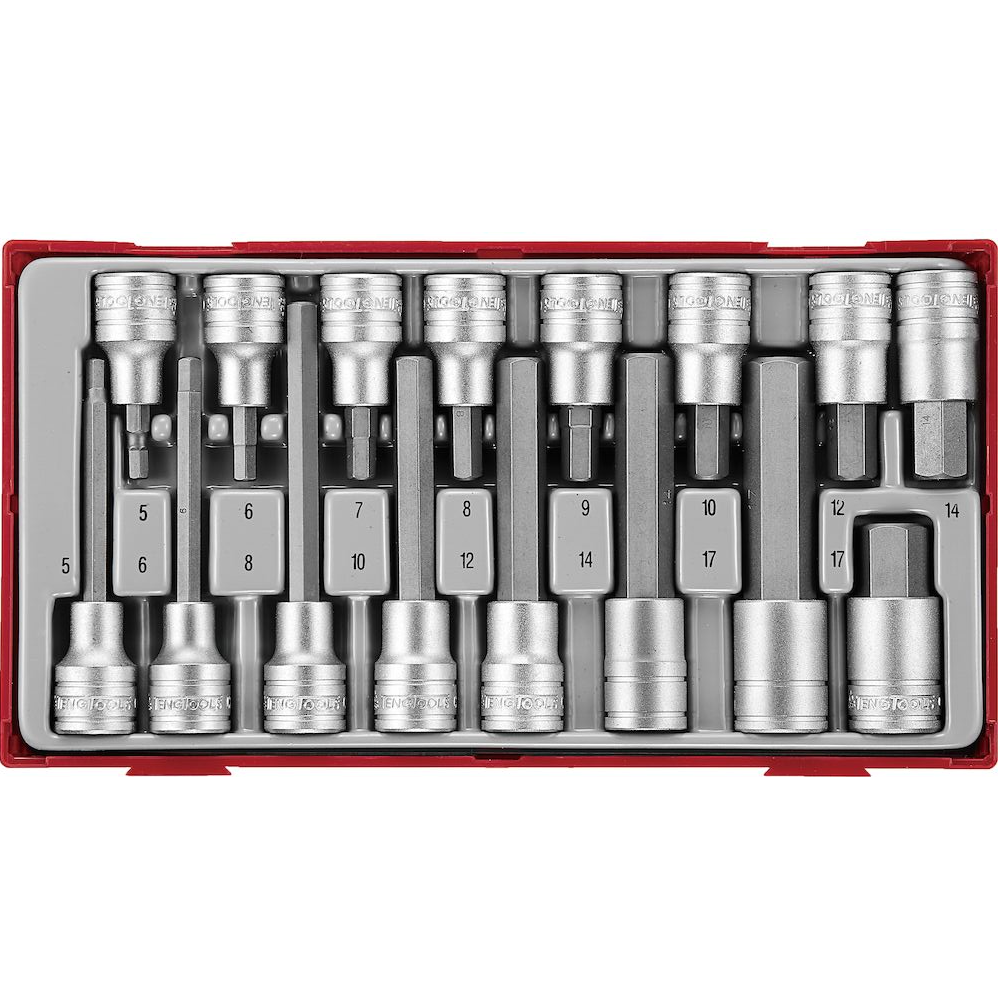 Jogo de 16 pontas hexagonais 1/2'' de 55mm, 100mm e 115mm Teng Tools