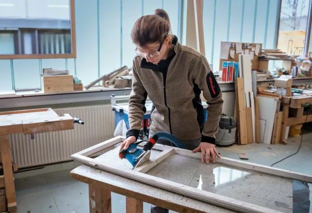 - Lixadeira vibratória compacta e ergonómica para múltiplas aplicações, incluindo cantos