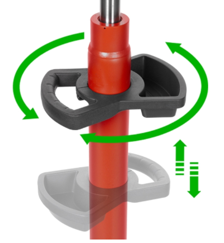 Macaco de transmissão de alta elevação exclusivo com todas as funções operadas com o pé. Máxima estabilidade, conforto e funcionalidade.