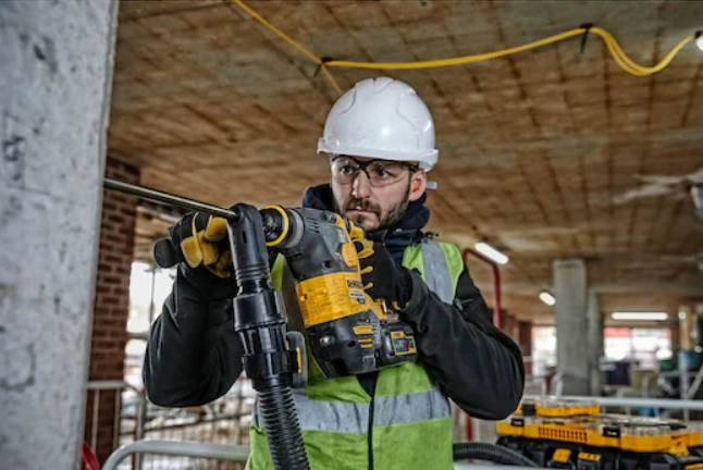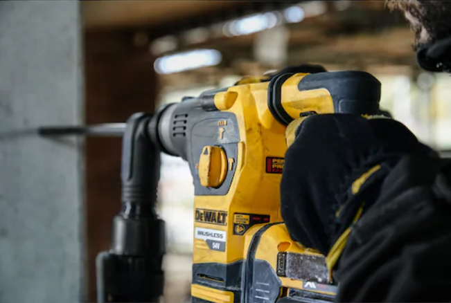 Martelo perfurador a bateria DeWALT XR FLEXVOLT 54V 18V preto e amarelo com pega adicional