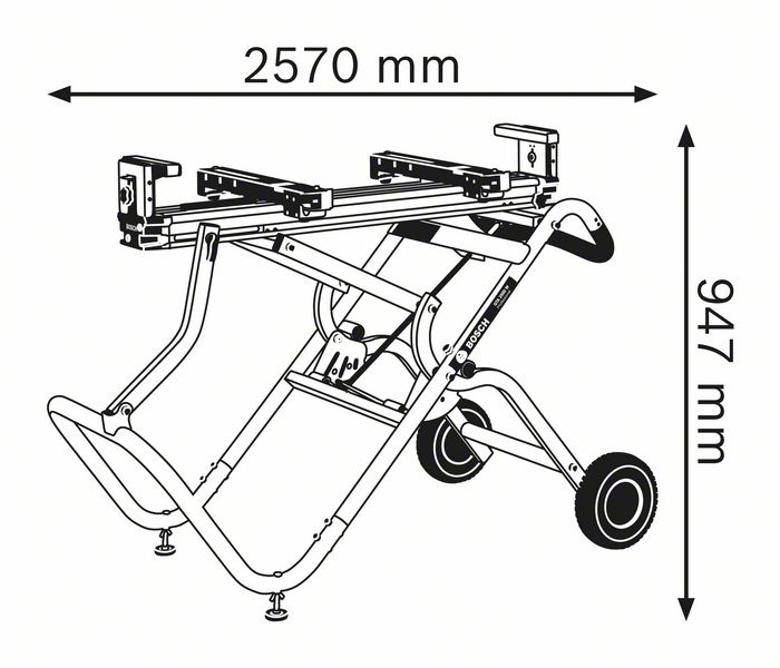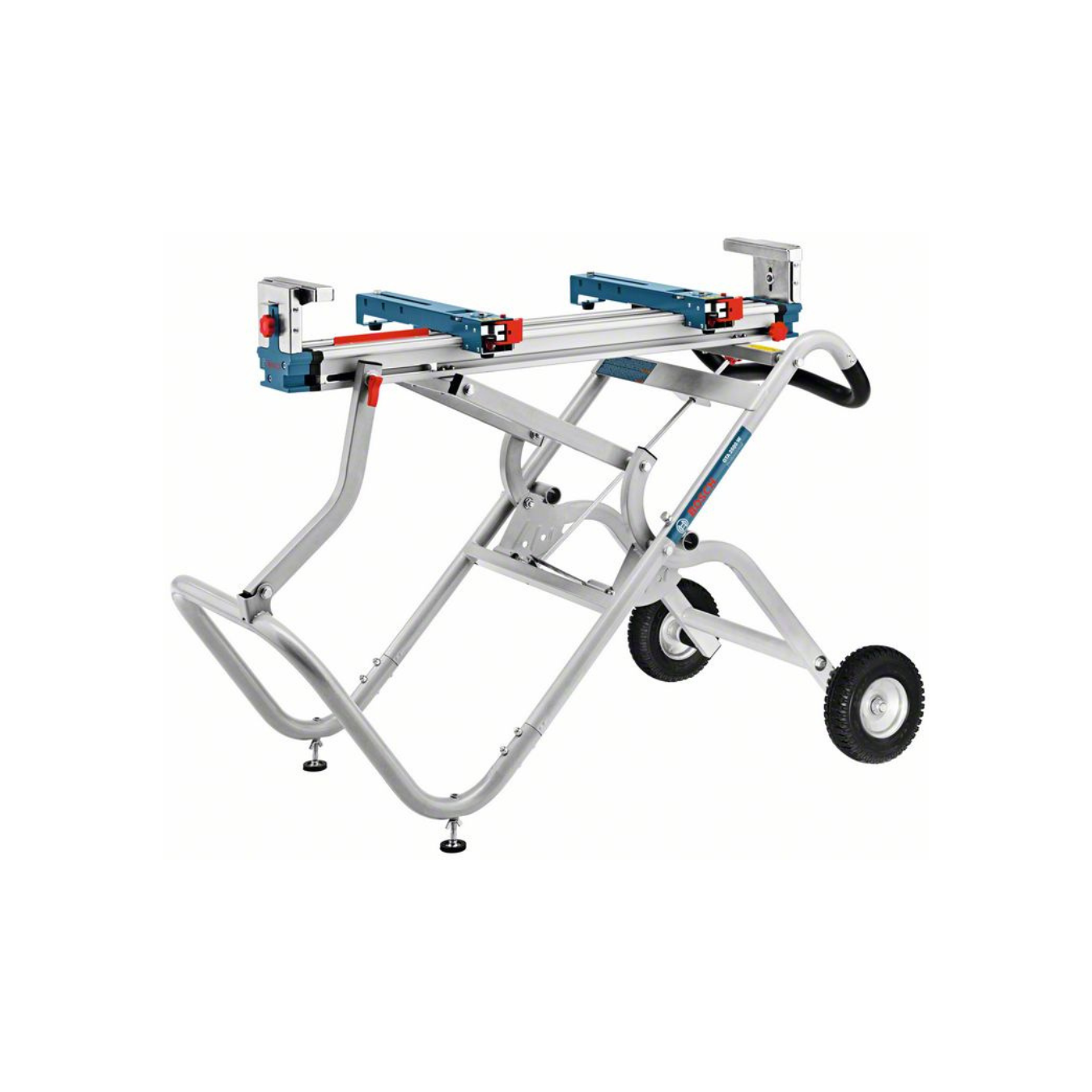 • Rodas para transporte e realocação rápidos, mesmo com as serras montadas