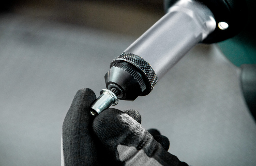 - Utilização versátil graças ao sistema de substituição rápida do mandril roscado
