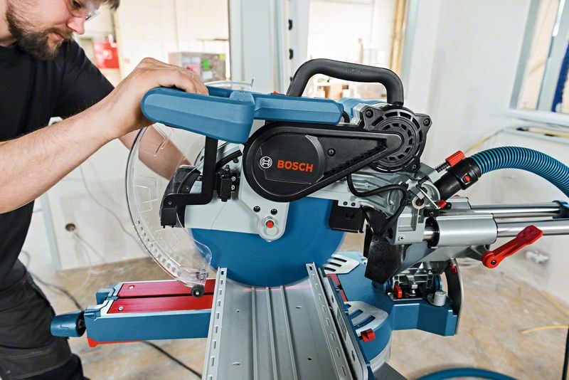 • A troca do disco de serra rápida e sem ferramentas assegura um manuseamento simples e prático