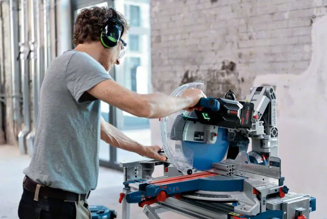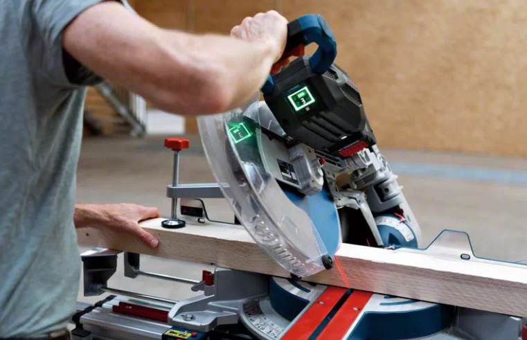 - Substituição da lâmina sem chave; controle de inclinação dianteiro; travão do motor; braço deslizante economizador de espaço para uma operação prática e segura