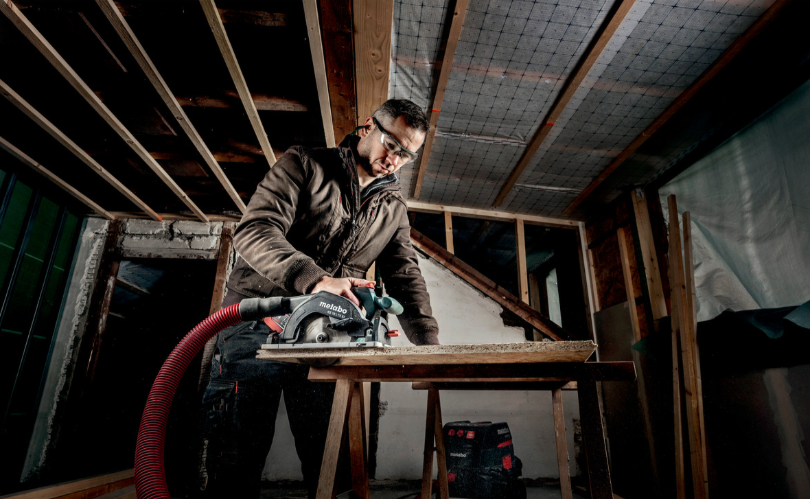 • Base estável em alumínio encaixável diretamente sobre as calhas-guia da Metabo e de outros fabricantes;