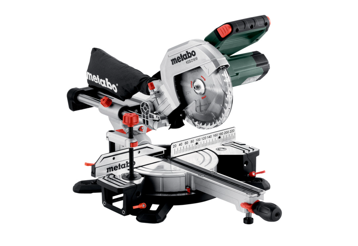 - Cabeçote da serra inclinável para a esquerda, com ângulo adicional para cortes tapados