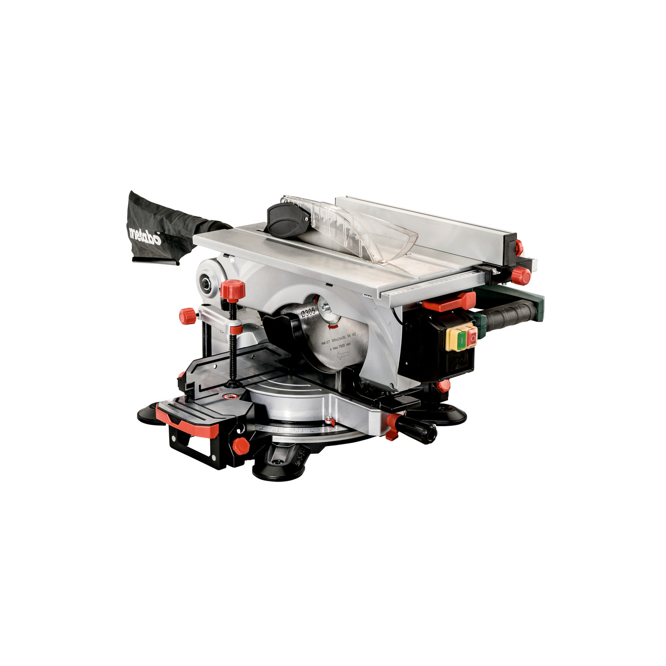 - Serra de corte transversal e esquadrias com função adicional de serra circular de bancada para cortes longitudinais